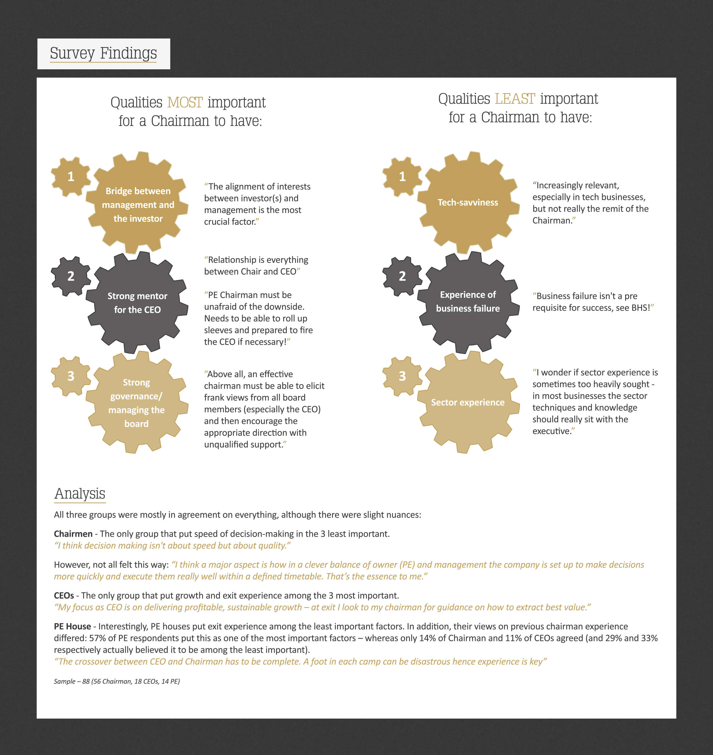 The theme of the evening was the role of the Chairman and before the event, we asked a group of prominent and respected chairmen, CEOs and private equity professionals to tell us what they believe to be the most and least important qualities of an outstanding chairman.